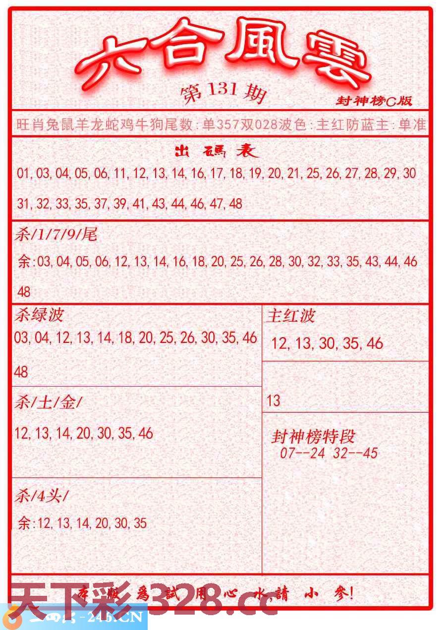 131期:六合风云面